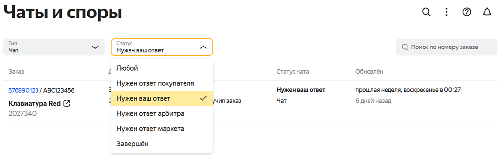 Yaratilgan chatlarda mo‘ljal olishda qidiruv filtrlari yordam beradi. Xaridor javob kutayotgan chatlarni ko‘rish uchun chat holatlari filtrini bosing va Javobingiz kerak variantini tanlang. Chat holatlari avtomatik ravishda o‘zgaradi.