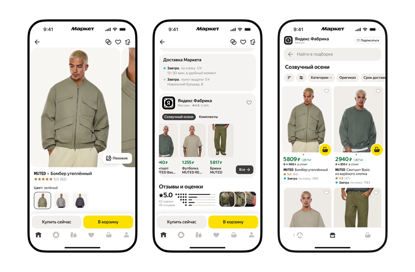 Например, одни и те же джинсы в разных размерах и цветах, или шуруповерт, который отличается только мощностью. Маркет показывает аналоги в отдельном блоке Еще может подойти на карточке, и подбирает их для каждого покупателя автоматически.
