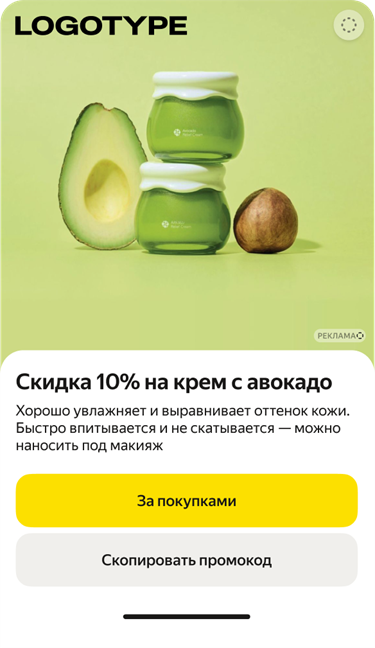 Поп-ап или всплывающее окно — это сообщение, которое появляется у пользователя на экране, когда он переходит на главную страницу Маркета. С его помощью можно рассказать, например, о новинках, акциях, поделиться промокодом на покупки в вашем магазине.