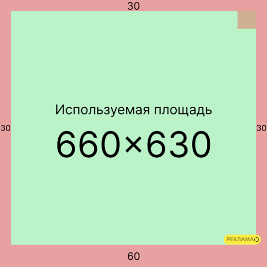 Охранная область баннера или safety area — это основное пространство, на котором располагаются все элементы, включая изображения, текст, заголовок. Вокруг этой зоны нужно оставить немного пространства до краев изображения — чтобы важная информация на баннере не сливалась с ними и не пострадала, если баннер обрежется при загрузке.