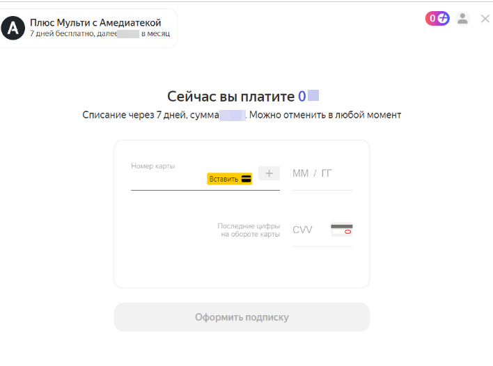 Платеж за Yandex Plus Multi & Amediateka будет списываться каждый месяц — автоматически с вашей карты. Дату следующей оплаты вы всегда можете посмотреть в личном кабинете.