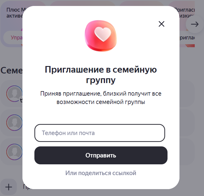 У близкого должен быть Яндекс ID, чтобы принять приглашение. Если у него несколько аккаунтов, нужно принимать приглашение с того аккаунта, на который он хочет подключить Yandex Plus.