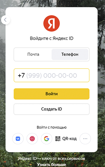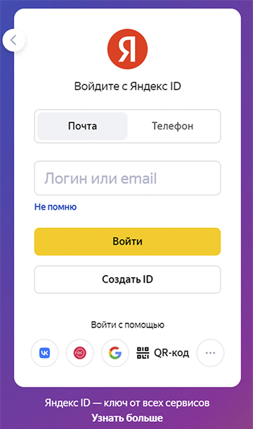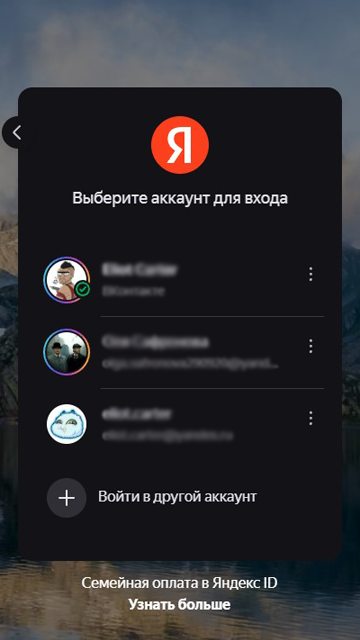 Agar siz faol obuna bo'lgan hisobni topa olmasangiz, avtorizatsiya sahifasiga o'ting va shaxsiy hisobingizga kirish-ni bosing. Shunday qilib, siz qurilmangizdagi Yandex xizmatlariga kirish uchun ishlatilgan barcha saqlangan hisoblarni ko'rishingiz mumkin.