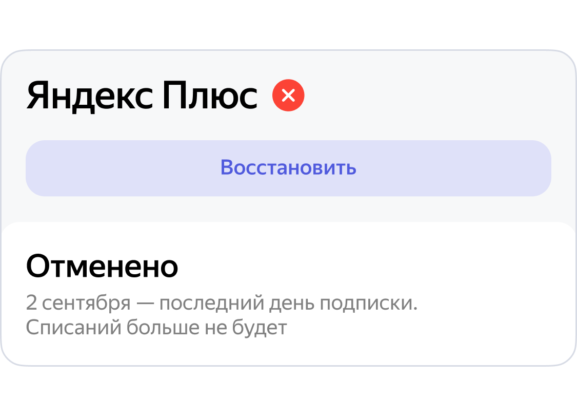 Bekor qilingandan so'ng, obunani avtomatik yangilash darhol o'chiriladi — pul hisobdan chiqarishni to'xtatadi. Imtiyozlar to'langan davr oxirigacha mavjud bo'ladi-uning tugash sanasini shaxsiy hisobingizda ko'rishingiz mumkin.
