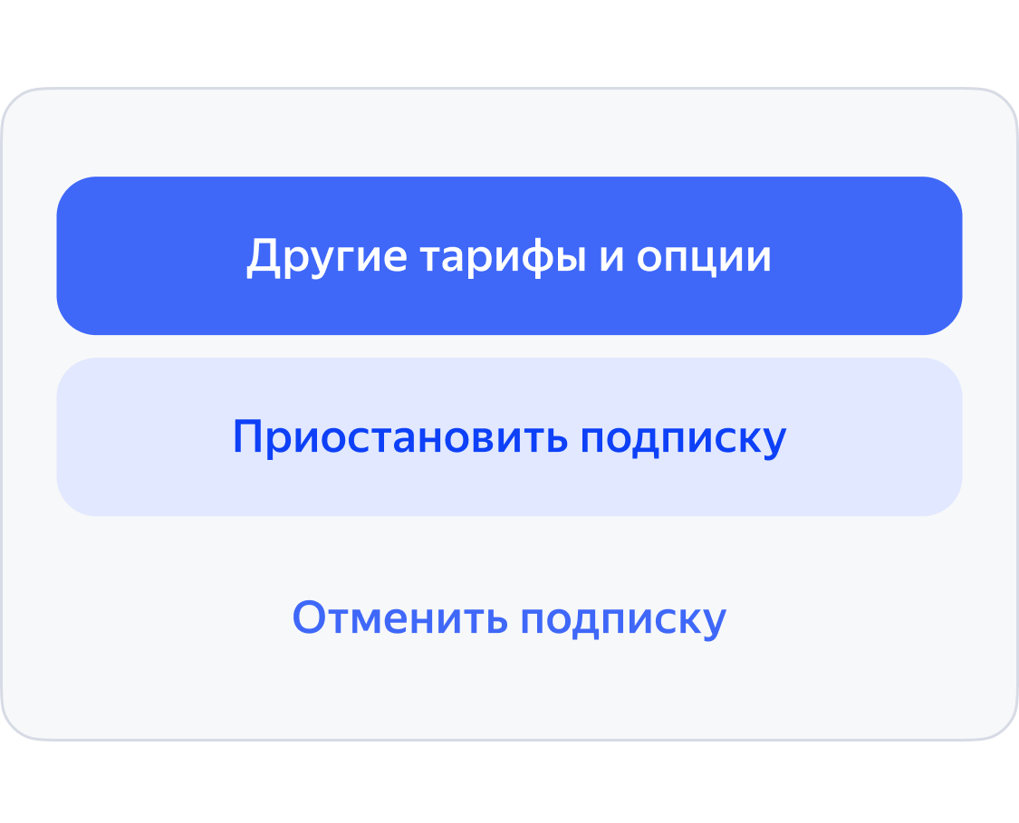 Obunani to'xtatib turish tugmasi ortiqcha narsani bekor qilmaydi. Agar siz uni bossangiz, obunani vaqtincha to'xtatib qo'yishingiz mumkin. To'xtatib turish muddati tugagandan so'ng, obuna yana ishlaydi va pul hisobdan chiqarishda davom etadi.