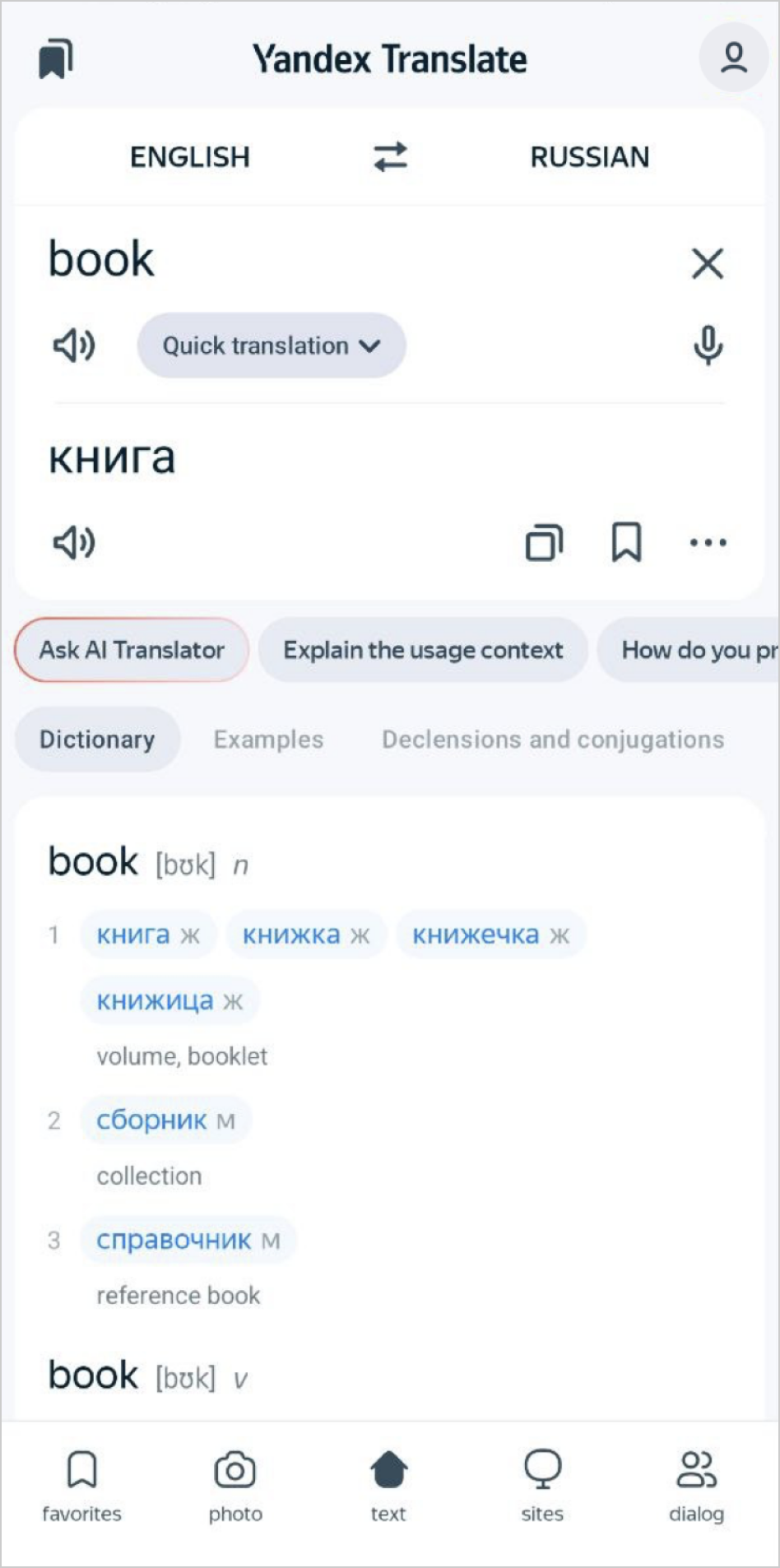 Use Yandex Translate to translate individual words and expressions, as well as text from websites and mobile apps.