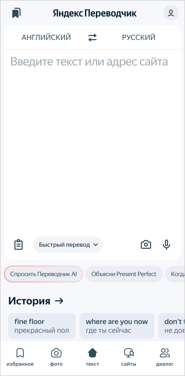 Жылдам аударма — күнделікті мәселелерге арналған базалық модель. Қысқа сөз тіркестері мен қарапайым мәтіндерге жарайды.