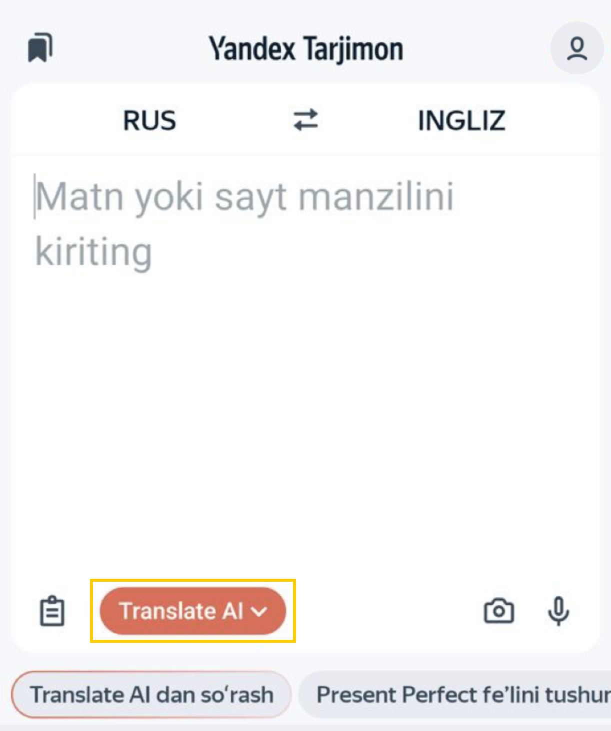 AI Tarjimon – kontekstni yaxshiroq tushunib, murakkab va katta hajmli matnlarni yanada sifatliroq tarjima qila oladigan ilgʻor modeldir.
