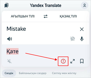 Егер аудармада немесе сөздікте қандай да бір қате кездессе, ол туралы қолданбадан хабарлай аласыз.