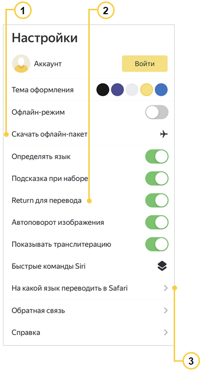 1 — скачать языковой пакет для офлайн-перевода 2 — использовать клавишу переноса строки, чтобы подтвердить ввод 3 — выбрать язык для перевода сайтов с помощью расширения в Safari |
