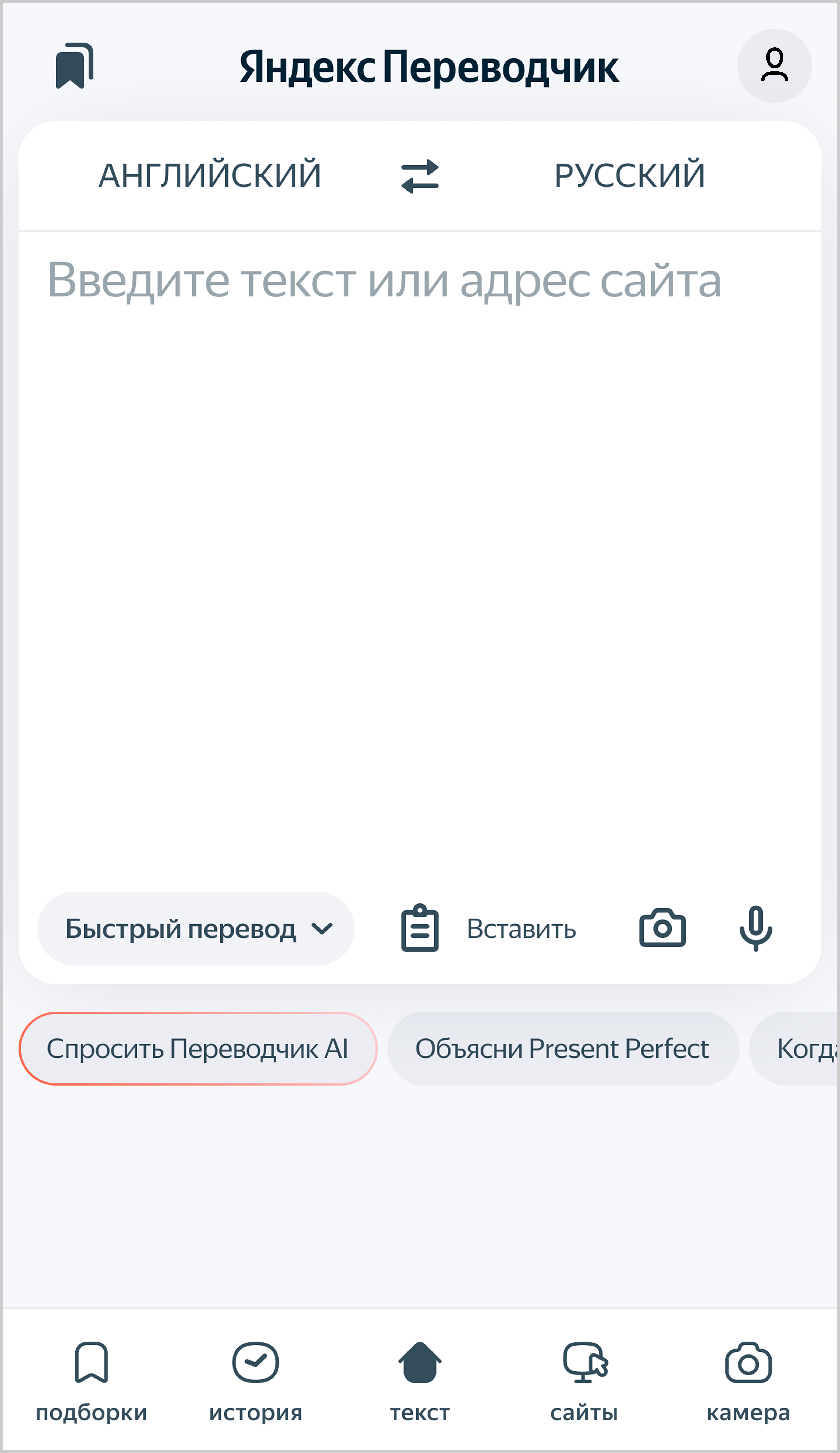 Быстрый перевод — базовая модель для повседневных задач. Подходит для коротких фраз и простых текстов.