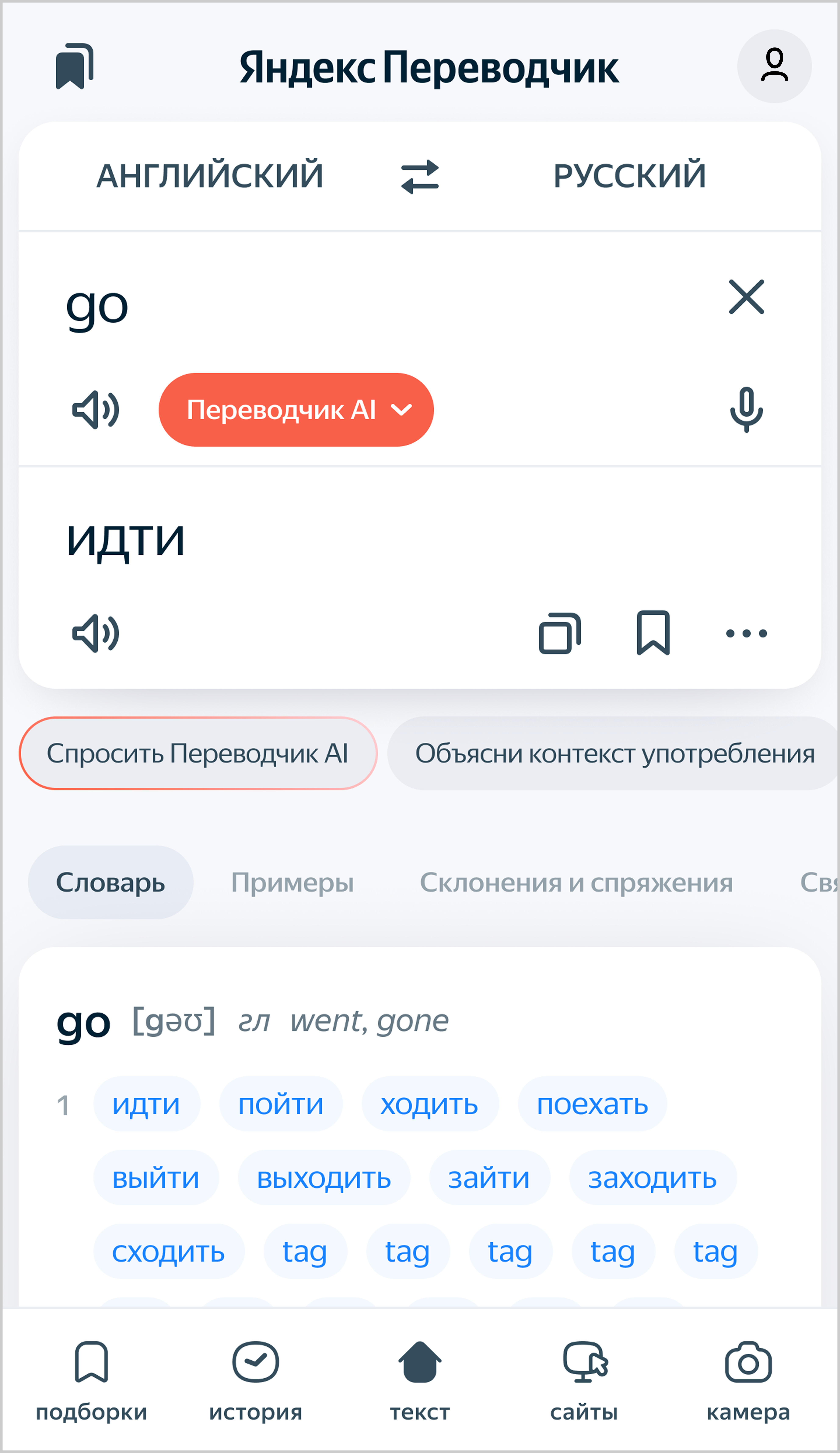 Переводчик AI — продвинутая модель, которая лучше понимает контекст и более качественно переводит сложные объемные тексты.