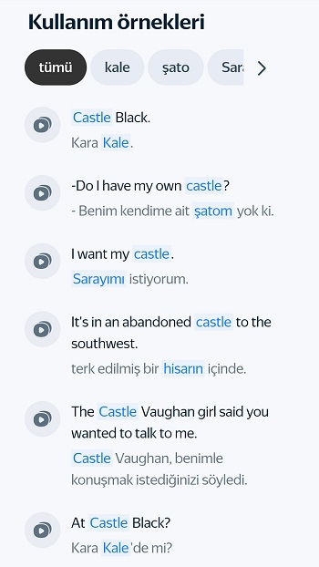 Ayrıca, örnekleri ayrı bir sekmede görüntüleyebilirsiniz. Bu, diğer sözlük öğelerinin dikkatinizi dağıtmasını engeller ve sadece kullanım örneklerine odaklanmanızı sağlar.