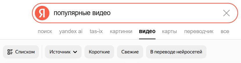 - В переводе нейросетей — видео на иностранном языке с закадровым переводом нейросетей Яндекса (доступно только в Яндекс Браузере).