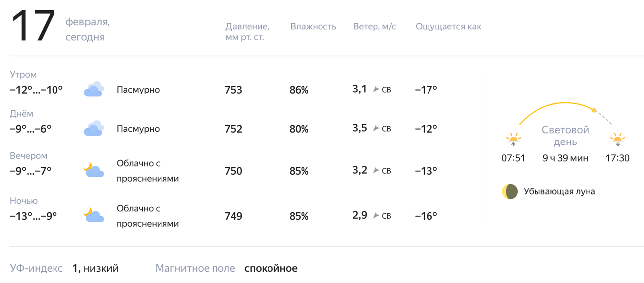 Яндекс Погода формирует подробный прогноз на 10 дней, потому что прогноз на дальнейший период недостоверен. По наблюдениям метеорологов, чем больше срок, на который сделан прогноз, тем меньше его точность: