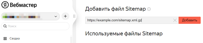 В поле впишите URL, по которому доступен файл. Например, https://example.com/sitemap.xml.