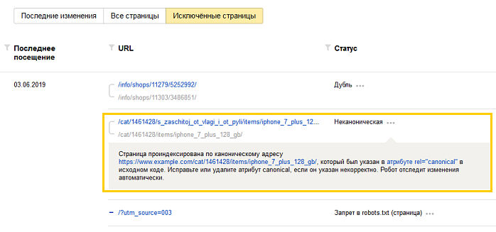 Робот игнорирует указания, если содержимое канонической страницы значительно отличается от содержимого неканонической. В этом случае в поиске может участвовать неканоническая страница. Чтобы проверить это, перейдите на страницу Индексирование → Страницы в поиске.
