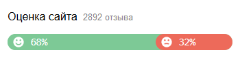 Пользователи могут оценить сайт, когда пишут отзыв. В Яндекс Вебмастере может отображаться шкала оценок, которая показывает общее количество отзывов и соотношение хороших и плохих оценок. Плохими считаются оценки 1–3, хорошими — 4 и 5.