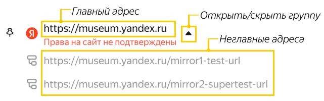 Главный адрес сайта — адрес, который отображается в результатах Поиска Яндекса. Только этот адрес участвует в ранжировании и показывается пользователям.