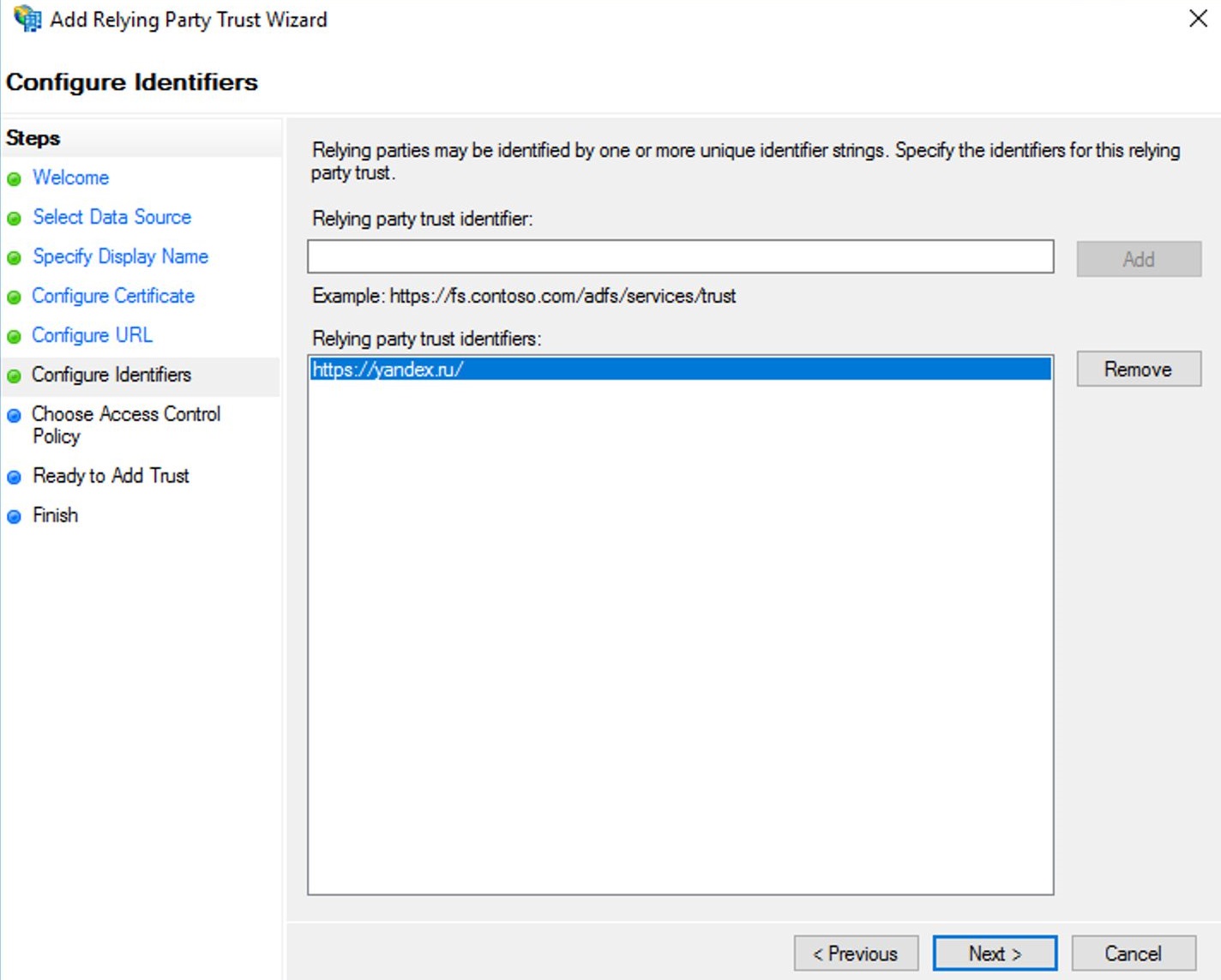 https://passport.yandex.ru/auth/sso/metadata.Нажмите Next.