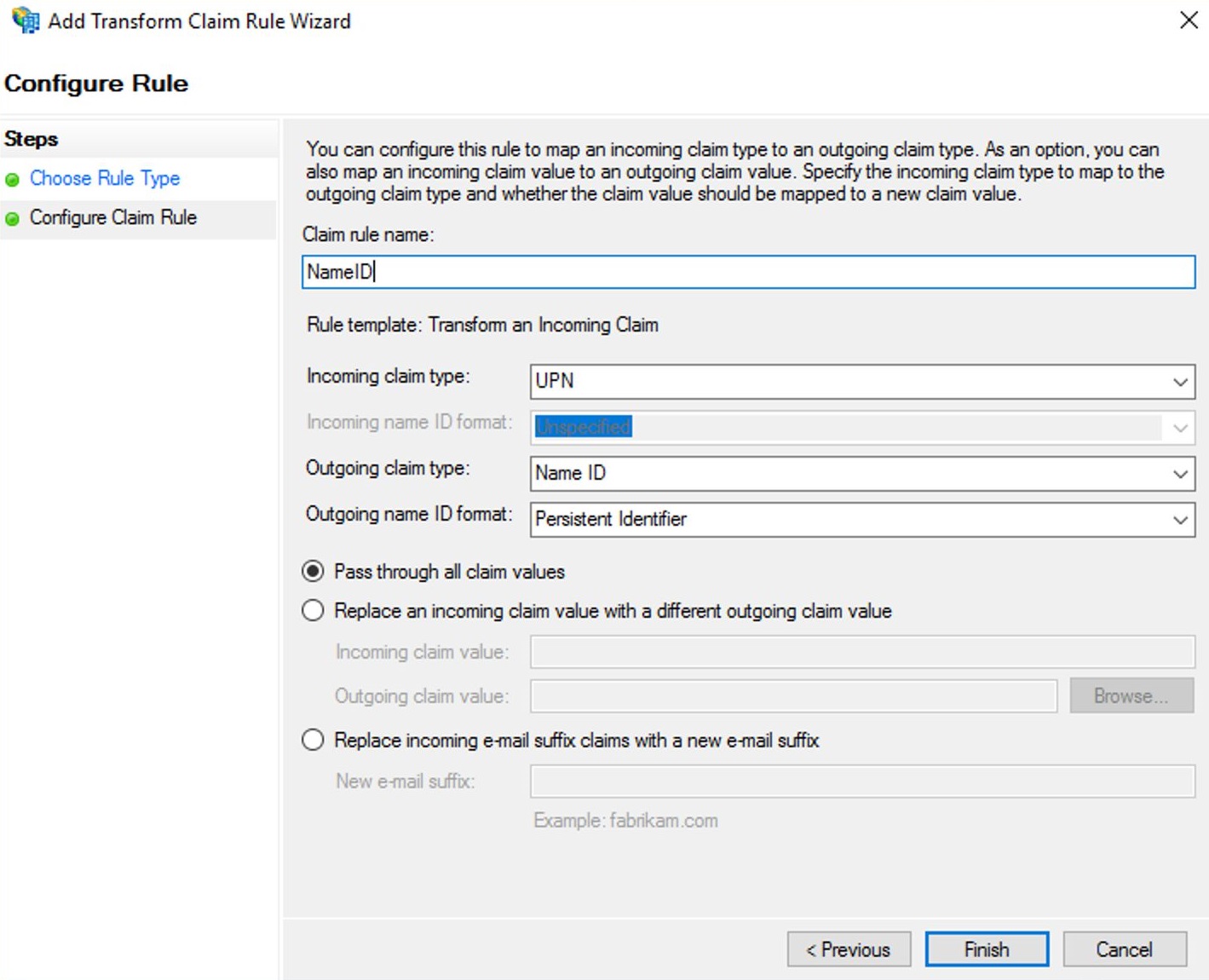 Придумайте любое название правила, например «NameID», и укажите его в поле Claim rule name.