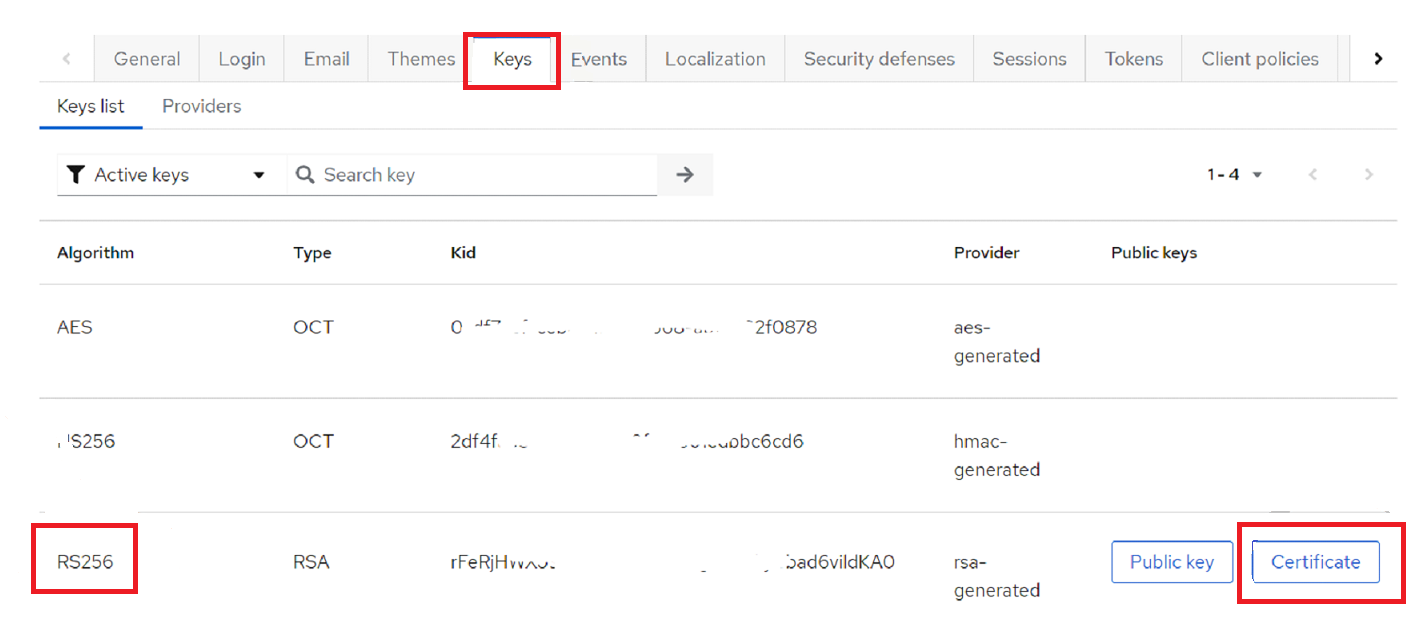 Также сертификат можно скопировать со вкладки Keys: