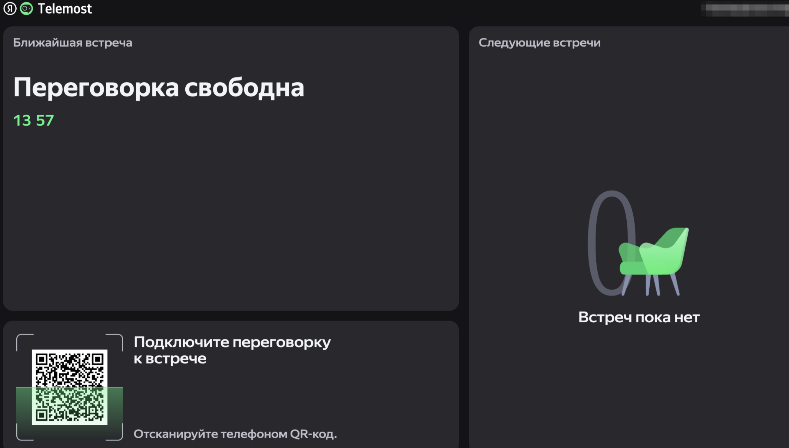 Готово. Теперь эта переговорка может участвовать в видеовстречах. На экране телевизора будет отображаться страница с ближайшими запланированными встречами в Телемосте и QR-кодом, с помощью которого сотрудники смогут подключаться к ним.