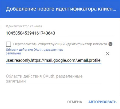 Uni OAuth ta’sir doirasi, vergul bilan ajratilgan maydoniga joylashtiring.