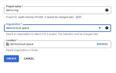 Create a project tugmasini bosing.