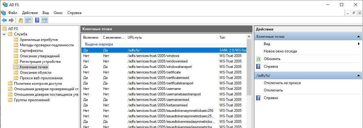 https://domen/adfs/ls.Boshqaruv panelida Yakuniy nuqtalar oching va Proksi yoqilgan parametri uchun