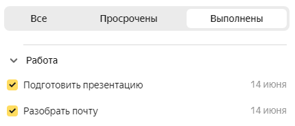 Muddati o‘tgan vazifalar qizil rang bilan belgilangan va Muddati o‘tgan sahifasida aks etadi.