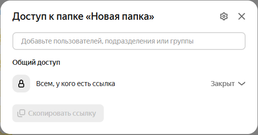 Постепенный перевод всех организаций на новый способ предоставления доступа к файлам и папкам завершится в первом квартале 2026 года. Если вам этот способ пока не подключили, воспользуйтесь инструкцией из раздела Поделиться ссылкой.