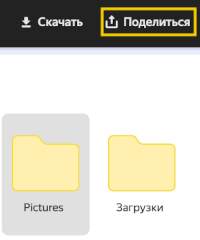 - Выберите файл или папку и нажмите Поделиться в контекстном меню или на верхней панели.