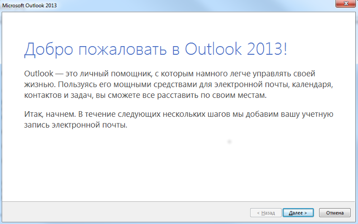 Чтобы завершить настройку учетной записи, в окне Добавить учетную запись нажмите Далее — будет выполнена проверка настроек учетной записи. Если проверка завершилась удачно, нажмите Готово. Если нет, убедитесь, что все параметры указаны корректно.