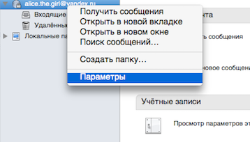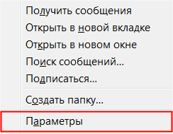 Нажмите на учетную запись правой кнопкой мыши (в списке папок) и выберите пункт Параметры.
