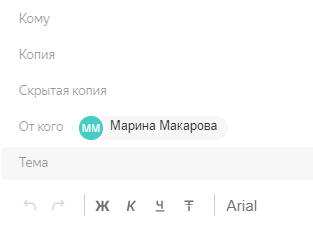 Если у вашего письма есть главный получатель, а остальным письмо посылается для ознакомления, введите главный адрес в поле Кому, а остальные — в поле Копия. Чтобы увидеть поле Копия, нажмите кнопку Копии, От кого ˅ в правом верхнем углу.