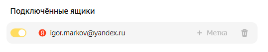 Чтобы установить метку для писем, собранных с этого ящика, нажмите + Метка и выберите подходящую метку или добавьте новую.