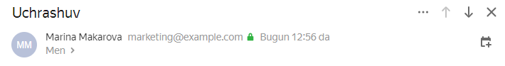 Xatlarda standart amallar bilan birgalikda (javob berish, qayta yuborish, o‘chirish, spam deb belgilash va boshqalar), siz xatni tarjima qilishingiz, uning xususiyatlarini ko‘rishingiz yoki ushbu xabar uchun ishlov berish qoidasini yaratishingiz mumkin.