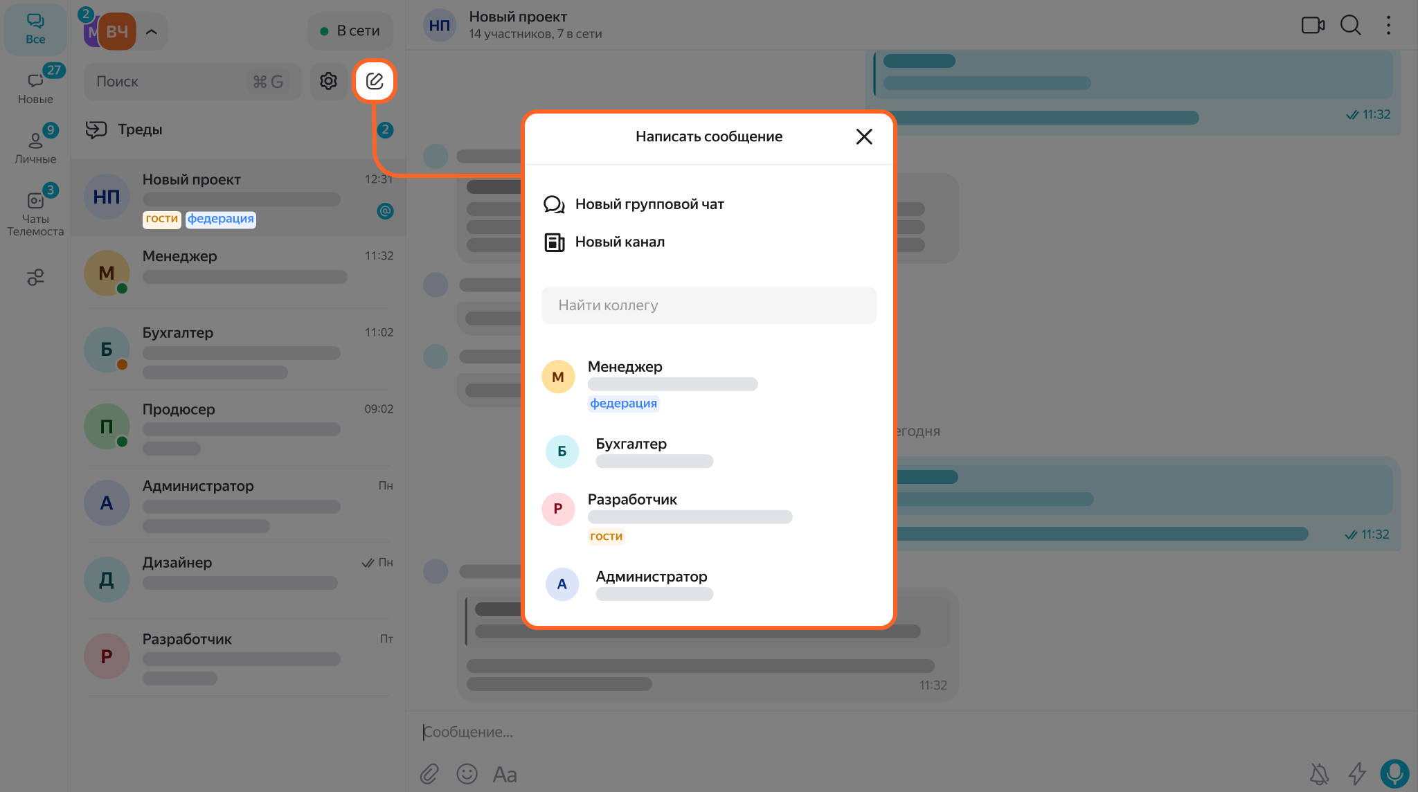 Изначально доступ к перепискам вашей организации в Мессенджере есть только у вас и ваших коллег. Если по работе вы часто общаетесь с людьми из других организаций — например, с соседним филиалом — ваш администратор может создать федерацию.