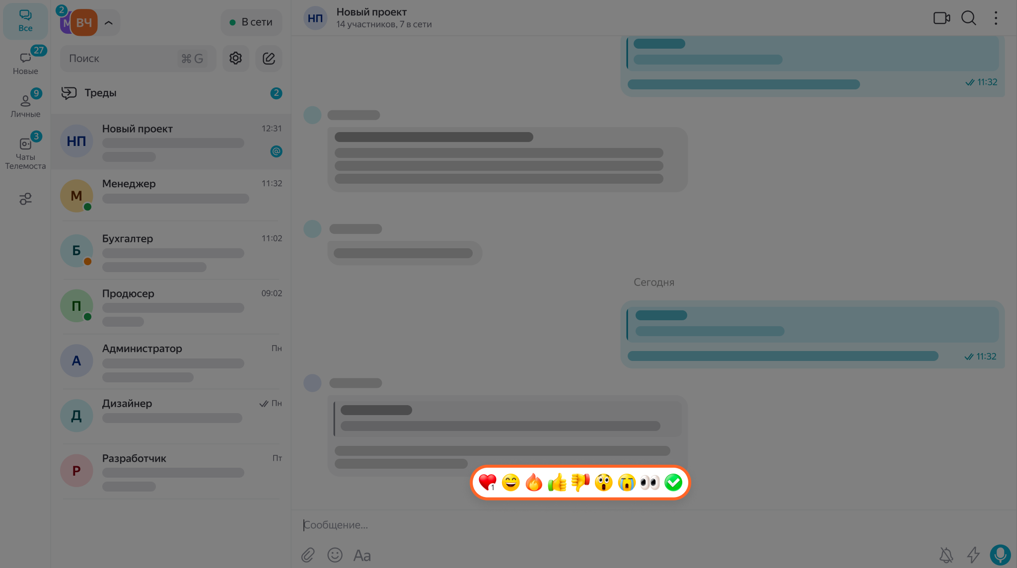 Если переслать или ответить на сообщение с реакциями, новый получатель их не увидит.