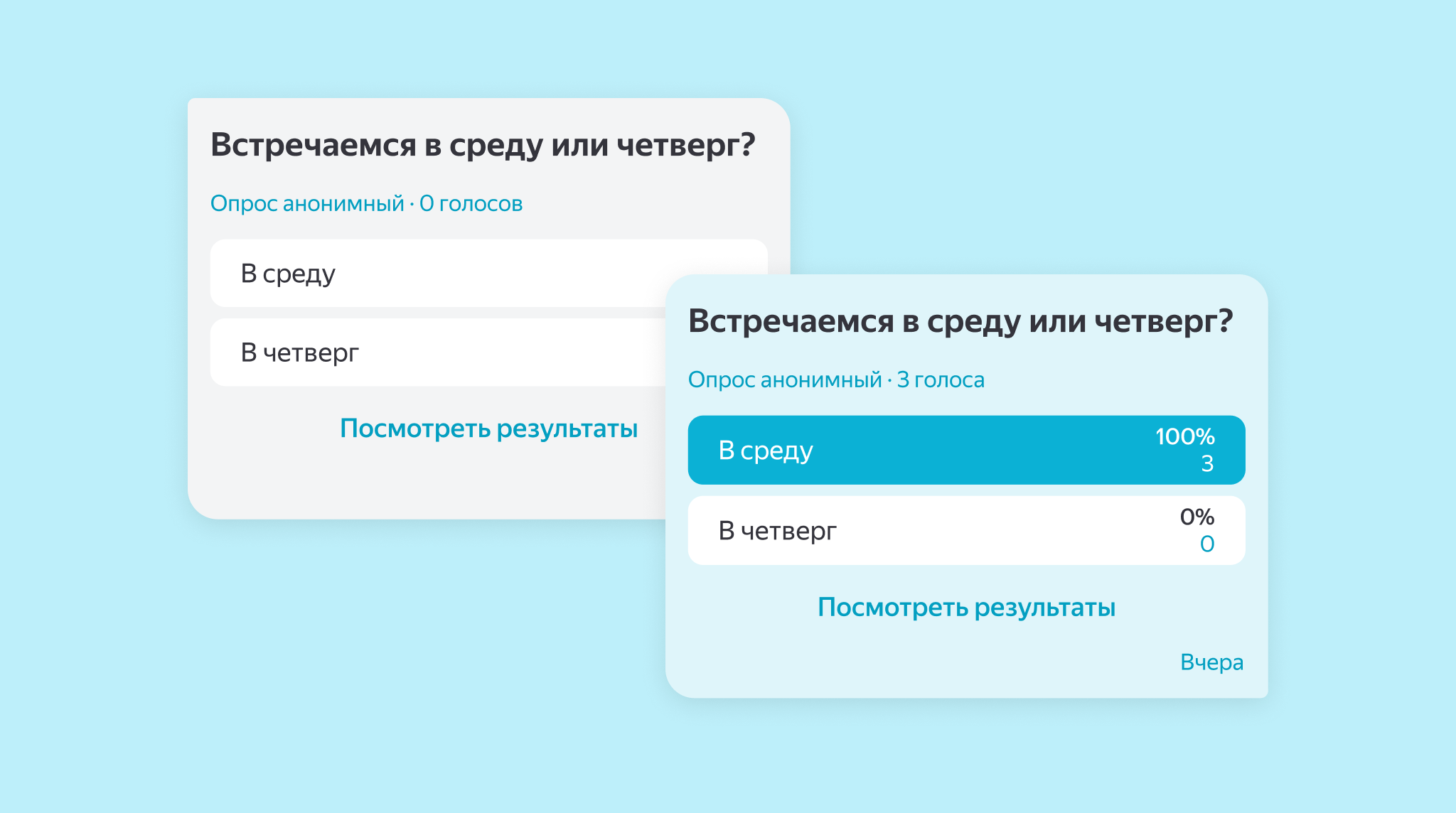Как и кто проголосовал, можно посмотреть в Мессенджере или скачать результаты Excel-файлом. Если опрос был анонимным, результаты будут доступны только в Мессенджере — в обезличенном виде.