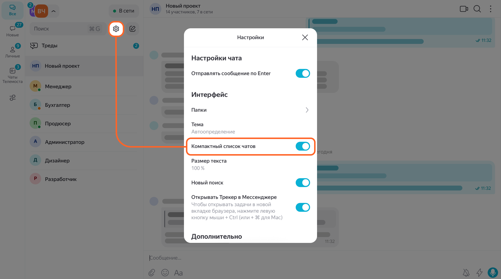 Если вы используете Мессенджер на компьютере, скройте содержимое чатов, чтобы список стал компактнее. Для этого нажмите