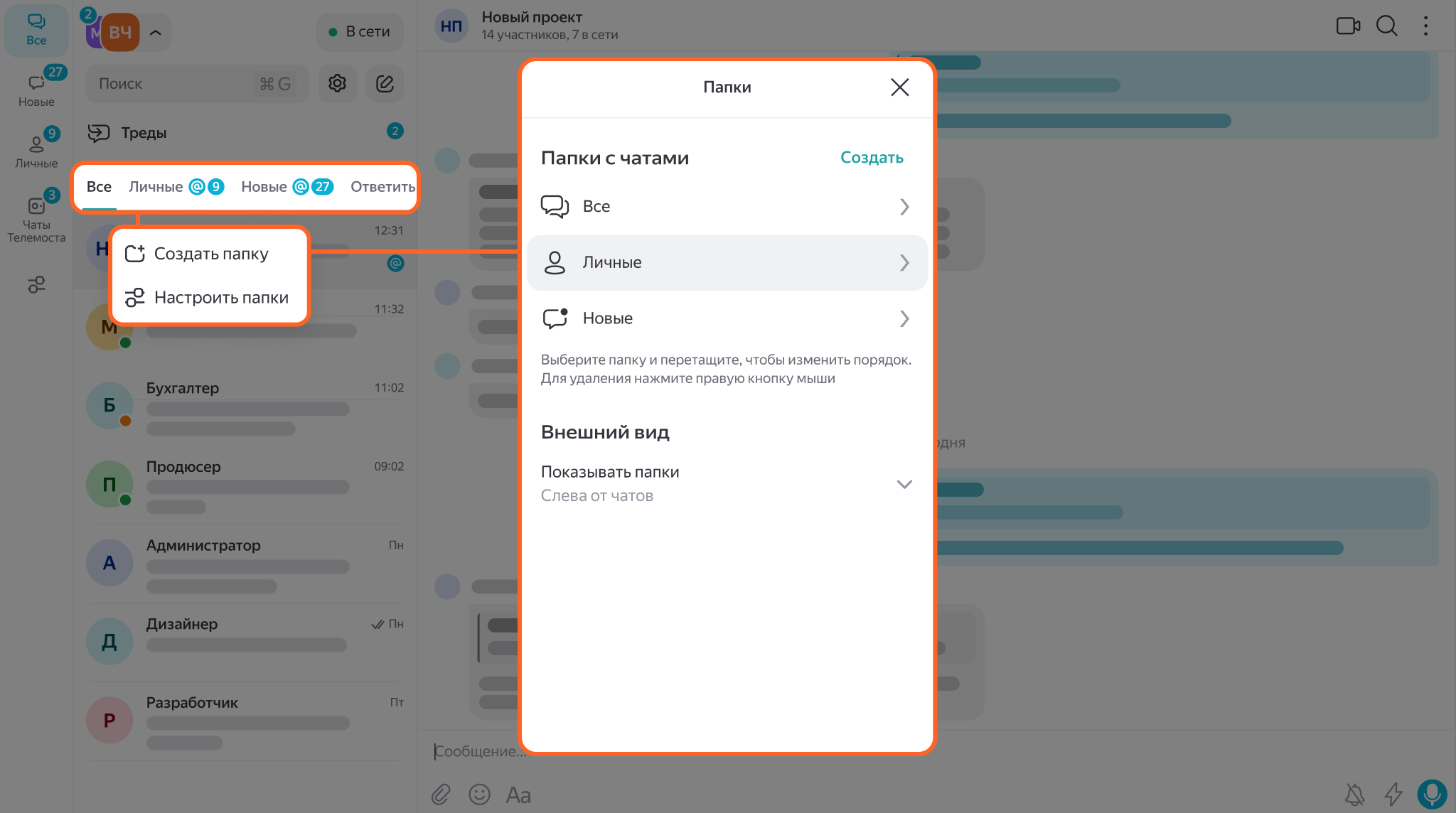 Разложить чаты по папкам