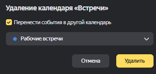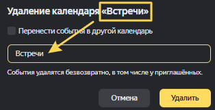 O‘chirish amalini tasdiqlash uchun kiritish maydoniga taqvim nomini yozing. Masalan, keraksiz taqvim “Uchrashuvlar” deb nomlansa, “Uchrashuvlar” deb yozing.