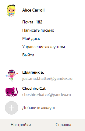 Bu imkoniyatni qo‘llab-quvvatlaydigan Disk, Pochta va boshqa Yandex xizmatlarida hisobni tanlashingiz mumkin. Tanlangan hisob asosiy hisoblanadi: u bilan hali almashtirishni dastaklamaydigan xizmatlarga kirasiz.