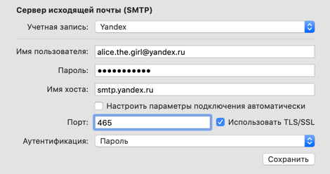 imap.yandex.uz(илиimap.ya.ru, если вы подключаетесь не из России); - Сервер исходящей почты —