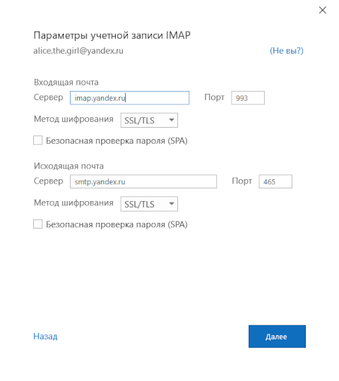 imap.yandex.uz(илиimap.ya.ru, если вы подключаетесь не из России). -