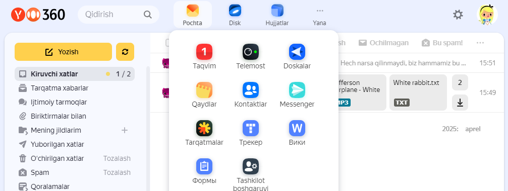 Smartfondagi kontaktlar Yandex Pochtada paydo bo‘ladi.