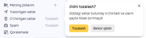 Xatlarni Chiqitdon jildiga joylashtirishni yoki butunlay o‘chirib tashlashni tanlang.