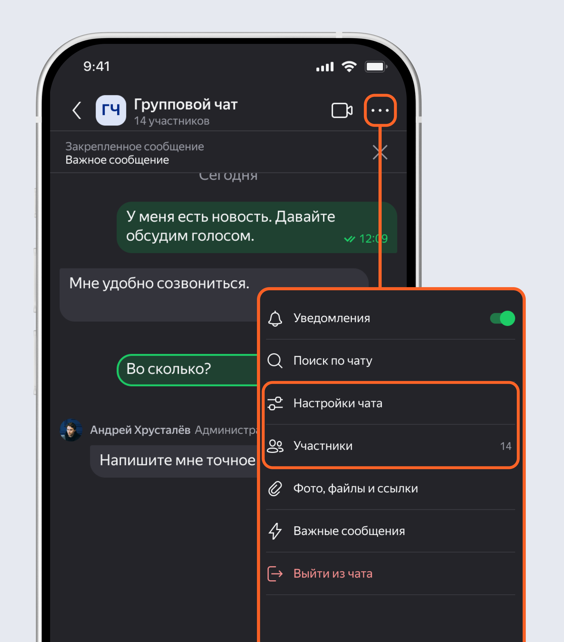 Если хотите что-то изменить в чате или канале, нажмите на его название. Управление участниками и администраторами находится в разделе Участники.